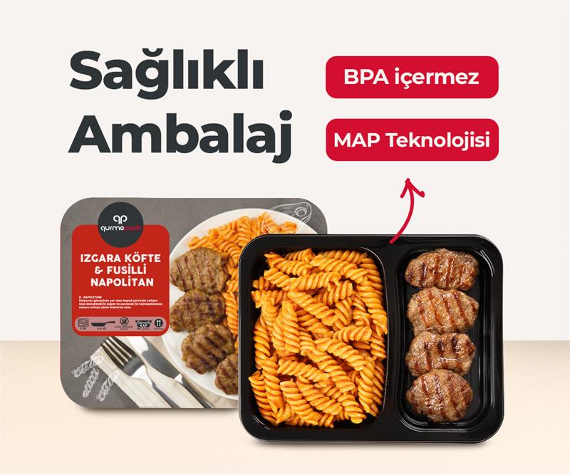 Yemeklerimiz, yüksek ısıya dayanıklı Mono PP kaplara Modifiye Atmosfer (MAP) teknolojisi ile el değmeden paketlenir. Bu yöntem sayesinde ürünlerimiz uzun süre tazeliğini ve güvenliğini korur.